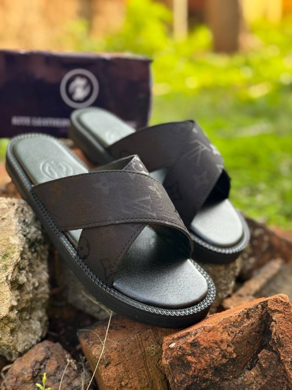Step up your style with the Kite Leatherworks LV Edition Slippers, a perfect blend of luxury and craftsmanship. Designed for men who appreciate elegance and comfort, these slippers feature premium leather with a refined LV-inspired pattern. The cushioned footbed and sturdy sole ensure long-lasting comfort, making them ideal for both casual and classy occasions.